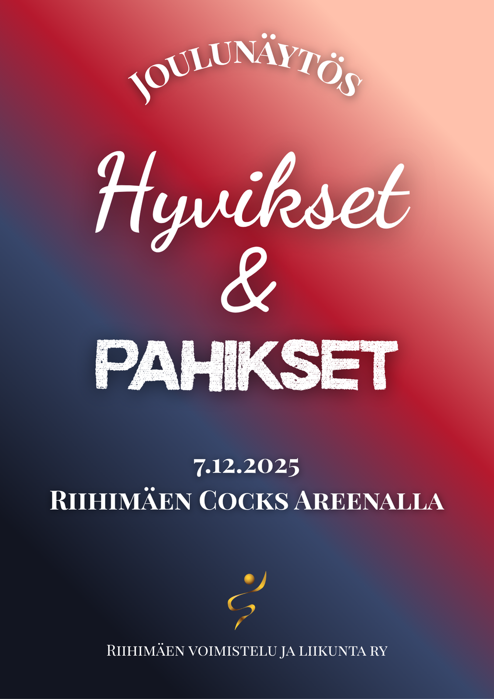 Tervetuloa RiVoLi ry:n Joulunäytökseen! Tervetuloa Joulunäytökseemme sunnuntaina 7.12.2025 Riihimäen Cocks Areenalle! Lisää infoa tapahtumasta ja lipunmyynnistä päivitetään Tapahtumat -sivulle.